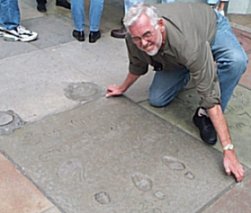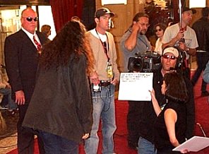 Grauman's Chinese Theatre/Jim tries to pry up John Wayne's cement block.Grauman's Chinese is a more negotiable public area without the old ticketbooth but there's something missing now. Also, out front there was a guy in a Spider-Man costume who had a pot-belly and bad posture. He just slouched on the make-shift fence doing nothing. It was as if Spider-Man had grown up, had a few too many beers and was trying on the old suit for kicks.
