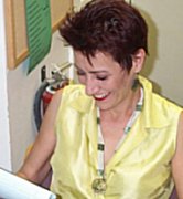 Deb Girdler before Vicki make-up and after, studying her lines.![]()