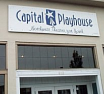 BWAHAHAHAHAI had planned, originally, to arrive the Wednesday because Jeff Kingsbury of the Capitol Playhouse had assembled a little vocal back-up and we were going to rehearse. But this being Saturday, we only had Sunday morning for rehearsing before the concert that night. I was so happy to see Jeff, bright and early, at 10am out in front of his immaculately cared-for storefront theatre.