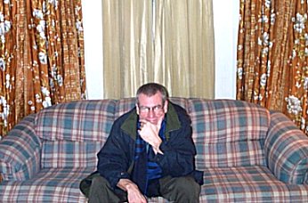 The fancy shmancy couch and curtains in our cast house.The scary thing about this whole production is that we have exactly five days to stage it, light it, memorize it and open. So I was thrilled when I got here to discover that Jay and Danette (Buddy and Tryshia) had already learned their music and their lines.And better, Chris Kawolsky who is directing and producing, cast a really great musician named Chris Burley in the role of Jim. Not only is he going to be playing guitar onstage for "Somebody's Friend" but he'll be playing bass and strings during the rest of the show on the other numbers.January 15-16, 2002.