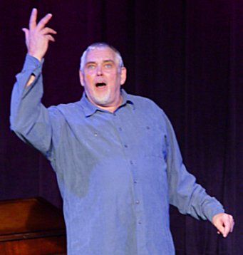 Then Friday night's show was mostly older couples. Mostly straight. (But with some young people and younger couples in the front row on folding chairs we've set up. We play some scenes literally inches away from them.)