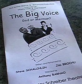 The purpose of this past weekend was to get The Big Voice back up on its feet after several months off. It was also to give Anthony Barnao, our director, a chance to look at it with fresh eyes to see how it and we have evolved over the past two and a half years, and to invite new industry people in to see it so that we could begin planning its future.Unlike a more formal production, we didn't really spend any money on publicity, nor did we take out ads. We basically made up a few flyers, sent out emails, announced the show from our website and crossed our fingers that people would show up so that we could have a nice audience for us to do the work in front of.